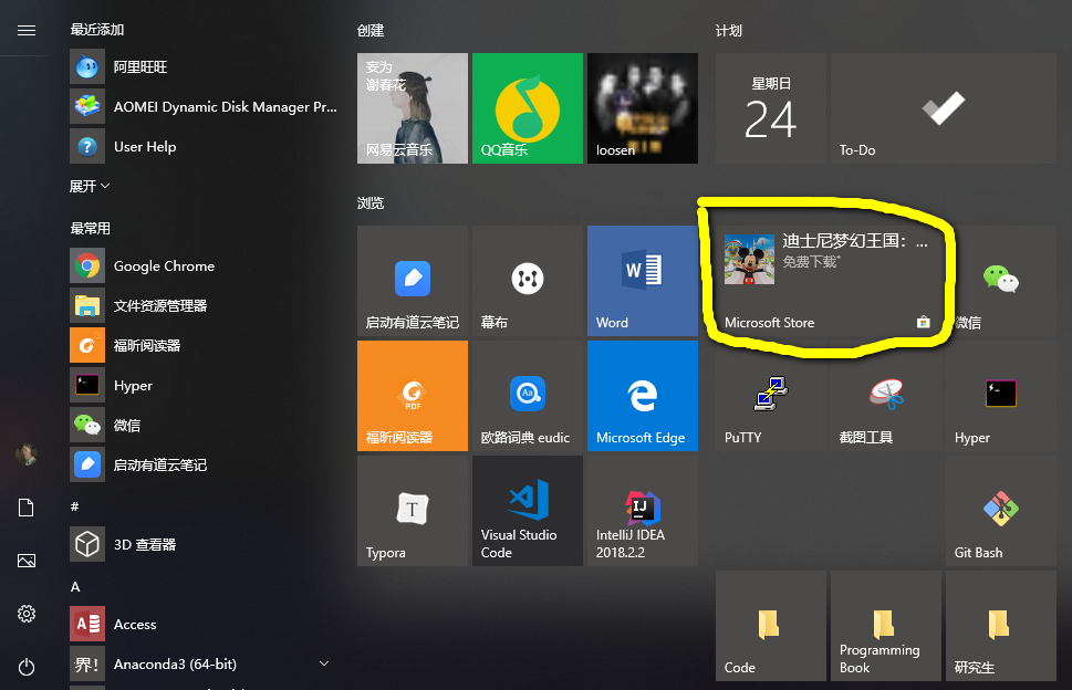 这时系统会提示重启,点击确定。重启之后从开始菜单的磁贴中打开 Microsoft Store,也就是微软应用商店。