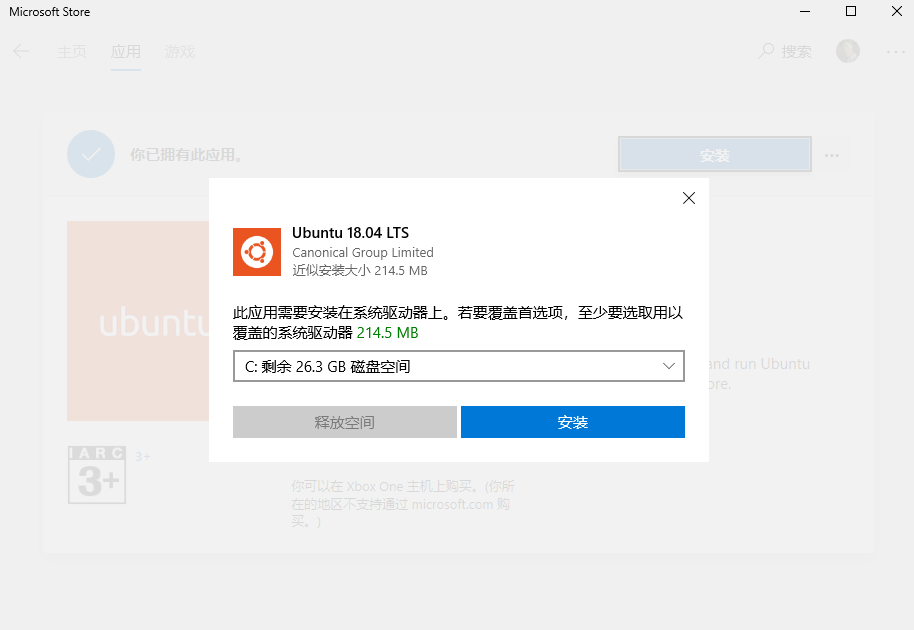 选择 Ubuntu(也可以选择其他的,不过 Ubuntu 对新手比较友好),然后点击获取应用,选择分区安装。